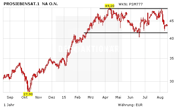 ProSiebenSat. 1 vergrößert sein Online-Geschäft immer weiter. Die digitalen Geschäfte sind klar die Treiber - sie wachsen weiterhin zweistellig. Mit der Entwicklung weg vom klassischen Werbefernsehen ist ProSieben Sat.1 auf dem richtigen Weg. Investierte Anleger bleiben dabei. Das Kursziel liegt knapp 80 Prozent über dem aktuellen Kursniveau bei 77 Euro.