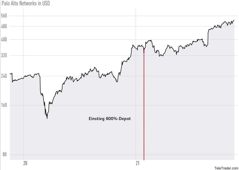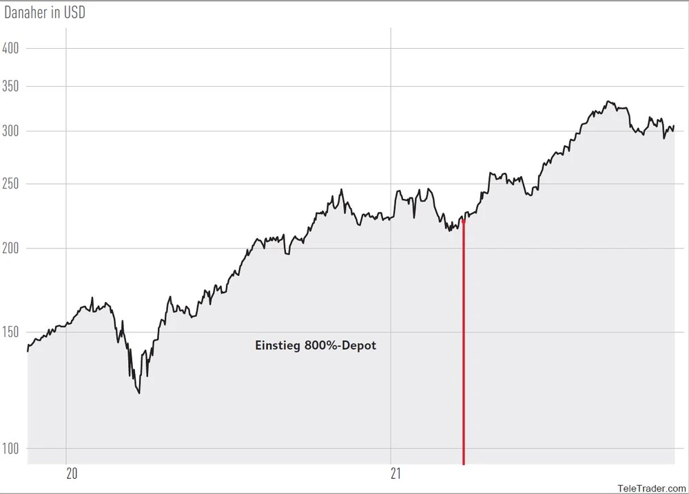 Gekauft wurde der Schein auf Palo Alto Ende Januar. In nicht einmal zehn Monaten wurde damit eine Performance von 420 Prozent erzielt. Noch schneller vonstatten ging dies bei dem Optionsschein auf Danaher. Dort wurden 408 Prozent in nur knapp sieben Monaten erzielt. Beide Aktien verlaufen in einem absolut intakten Aufwärtstrend und ein Ende der Fahnenstange ist noch lange nicht in Sicht. Um weiter voll vom hohen Momentum von Danaher und Palo Alto zu partizipieren, werden die aktuellen Scheine gegen neue Optionsscheine getauscht die sich aktuell im optimalen Wirkungsfenster bewegen.