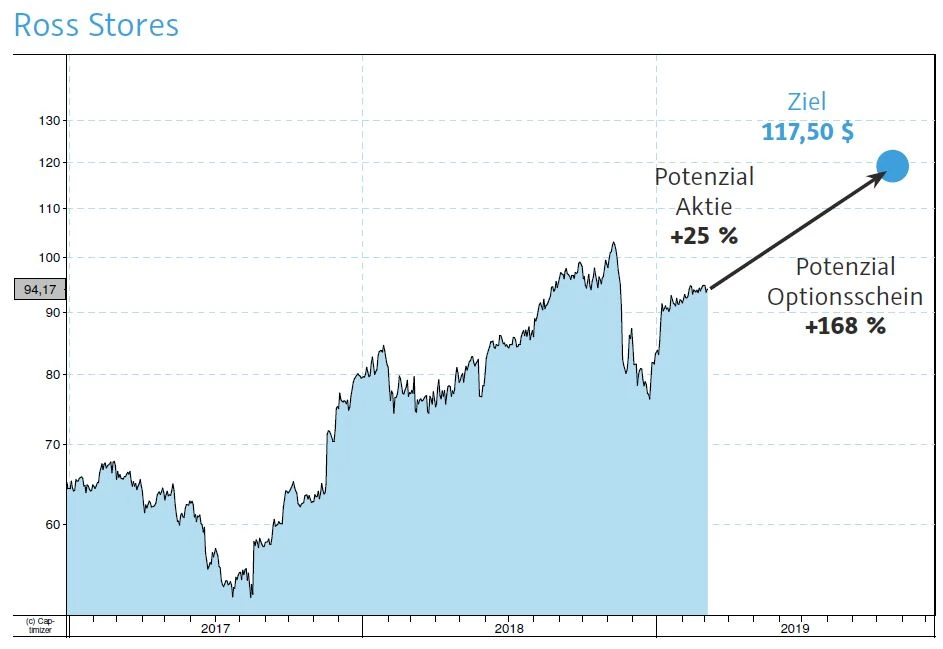 Für Anleger die noch mehr aus dem Wert herausholen wollen, hat Derivateexperte Norbert Sesselmann aus tausenden Produkten den genau passenden Optionsschein gefunden. Neben Ross Stores finden sich im Optionsschein-Depot der 800%-Strategie noch neun weitere Megatrend-Aktien die mit den optimal passenden Optionsscheinen begleitet werden. In den wöchentlich erscheinenden Ausgaben erfahren Leser zudem alles zum Thema Optionsscheine und können damit selbst zum Experten werden. Weitere Informationen finden Sie unter www.800-prozent.de