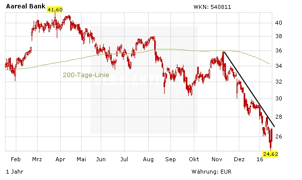 Deutlich verbessern würde sich dagegen das Chartbild, wenn die Aktie nachhaltig über 27,20 Euro stiege. Dann wäre der seit November 2015 gültige Abwärtstrend gebrochen. Außer Reichweite befindet sich aber selbst dann die 200-Tage-Linie, die bei 34,18 Euro verläuft.