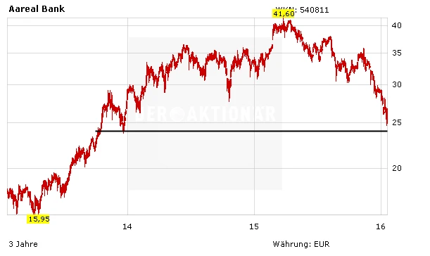 Die Experten vom Bankhaus Lampe haben den europäischen Bankensektor unter die Lupe genommen, der durch Wechselkurse, Niedrigzinsen, Investmentbank-Umstrukturierungen und der Abkühlung in den Schwellenländern unter Druck gekommen war. Diese bevorzugen Aktien mit hoher Dividendenrendite oder bestem Trendwende-Potenzial. Da die Aareal Bank auf dem aktuellen Kursniveau eine Rendite von 4,6 Prozent aufweist, haben sie das Papier von "Halten" auf "Kaufen" hochgestuft.