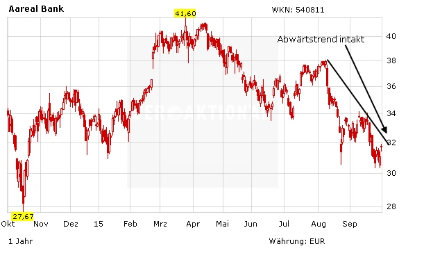 Die Aareal Bank ist mit einem 2015er-KGV von 6 ausgeprochen günstig bewertet. Der Titel zählt auf jeden Fall zu den Werten, die in der Korrektur ungerechtfertigt gefallen sind. Für langfristig orientierte Anleger bietet sich damit eine gute Einstiegschance, zumal kein Ende des Baubooms ersichtlicht ist, angesichts notorisch niedriger Zinsen. DER AKTIONÄR empfiehlt einen Stopp bei 26,50 Euro.