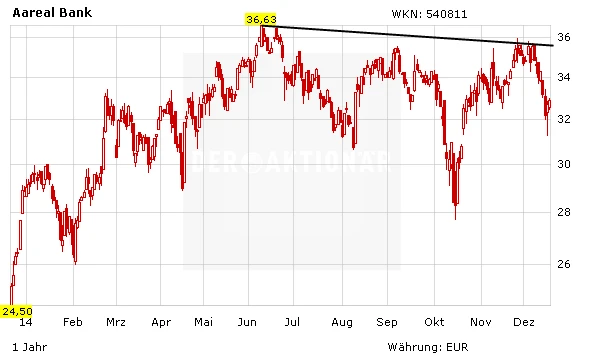 Die Aareal Bank bleibt nach wie vor auf mittel- bis langfristige Sicht der attraktivste Bankenwert in Deutschland. Das Qualitätsunternehmen ist immer noch günstig bewertet und bietet die Chance auf eine satte Dividendenrendite (satte Renditen erhalten Anleger 2015 indes auch bei diesen Aktien). Der Stopp sollte bei 25,50 Euro belassen werden.