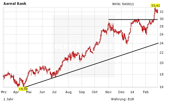 Nach dem rasanten Kursanstieg war eine leichte Erholung nur eine Frage der Zeit. Doch fundamental stimmt die Richtung. Die Aareal Bank ist ein solides und gut wirtschaftendes Unternehmen. Der weitere Ausblick bleibt dementsprechend positiv. In den kommenden Wochen sollte der Titel Kurs Richtung 37 Euro nehmen. Ein Stopp bei 23,50 Euro sichert die Position ab.