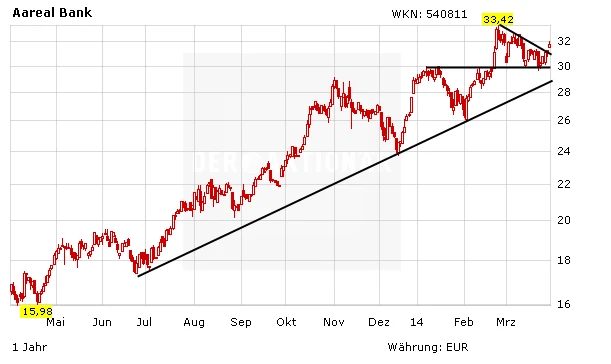 Die Aktie der Aareal Bank startet mit einem deutlichen Kursplus in die neue Handelswoche. Neben dem ohnehin relativ freundlichen Marktumfeld erhalten die Anteilscheine des Wiesbadener Immobilienfinanzierers zusätzlichen Rückenwind von einer Meldung über eine mögliche Sonderdividende in Höhe von 4,50 Euro.