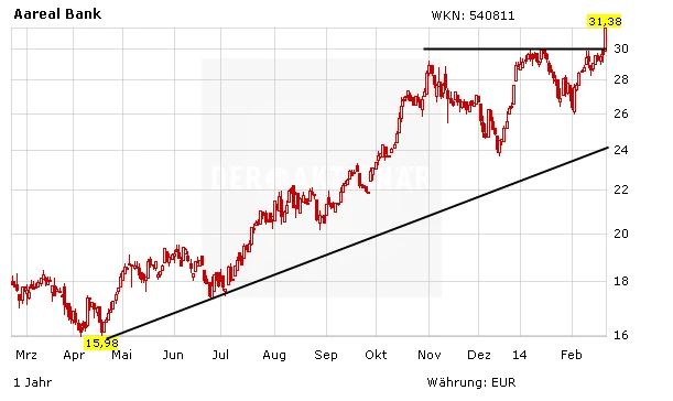 Der Höhenflug der Aareal Bank setzt sich unvermindert fort. Die Aktie liegt weiterhin deutlich an der Spitze des MDAX. Nach dem Ausbruch über die 30-Euro-Marke hat die Aufwärtsbewegung noch einmal deutlich an Schwung aufgenommen. Laut den Experten von Kepler Cheuvreux hat die Bank einen beeindruckenden Wandel vollzogen.