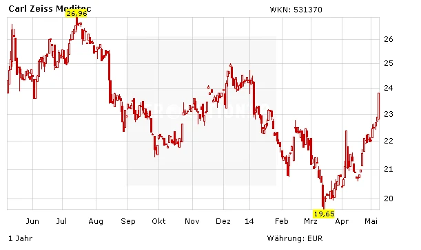 Die Anleger nehmen die Zahlen positiv auf. Carl Zeiss Meditec zählt zu den größten Gewinnern im TecDAX. Kurse um 26 Euro liegen im Rahmen des Möglichen.