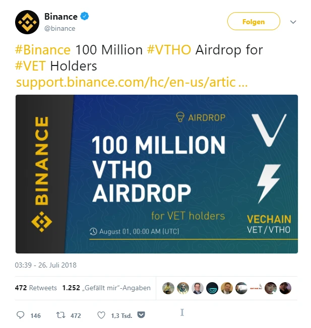 Top-Gewinner ist am Freitag ein alter Bekannter für die Leser des bitcoin report: VeChain kann rund 20 Prozent zulegen, nachdem das VeChainThor-Mainnet live gegangen ist und die Krytobörse Binance via Twitter einen Airdrop von 100 Millionen VTHO-Token angekündigt hatte.