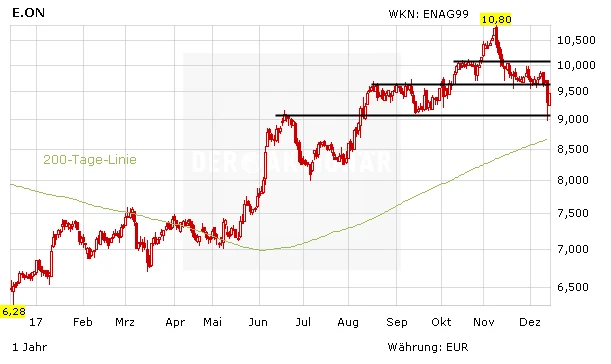 Während RWE durch die Beteiligung an Innogy direkt vom Kursverlust der „grünen Tochter“ betroffen ist, wurde E.on am Mittwoch in Sippenhaft genommen. Der DAX-Konzern konzentriert sich ebenfalls auf die zukunftsträchtigen Bereiche wie die erneuerbaren Energien oder das Smart Home. Hinzu kommen die Wachstumsprobleme bei Vertrieb und Netzen. Allerdings hat das Management zuletzt sehr gute Arbeit geleistet. Durch den anstehenden Verkauf der Uniper-Beteiligung wird sich zudem die finanzielle Situation weiter verbessern. So lassen sich auch die hohen Investitionen in die neue Energiewelt deutlich einfacher stemmen.
