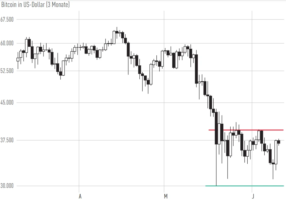 Auch am Donnerstagmorgen gehört der Bitcoin mit einem Plus von rund sieben Prozent auf 24-Stunden-Sicht zu den größten Gewinnern unter den Top-Coins nach Market Cap. Komplett aus dem Schneider ist er damit aber noch nicht. Zwar mehren sich die Zeichen für einen Rebound, wichtige wäre dabei aber ein nachhaltiger Ausbruch über den Widerstand bei 40.000 Dollar.