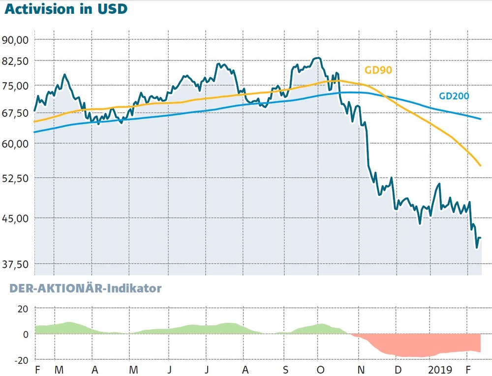 Nach den Quartalszahlen heißt es für die Anleger von Activision Blizzard erst einmal durchatmen. Zwar hat der Spielekonzern eine schwache Prognose für das laufende Geschäftsjahr veröffentlicht, doch dieser Umstand scheint nach einem Kursverlust von 50 Prozent seit dem Oktoberhoch bereits in den Aktienkurs eingepreist.