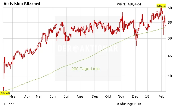 Ein starkes Quartal – und auch der Ausblick für das neue Geschäftsjahr überzeugt. Activision Blizzard erwartet einen Umsatz in Höhe von 7,35 Milliarden Dollar bei einem Gewinn je Aktie von $1,78. Der Konzern liegt damit innerhalb der Erwartungen der Analysten. DER AKTIONÄR bleibt trotz der schlechten Marktlage positiv für die Aktie von Activision Blizzard gestimmt. Anleger bleiben dabei.