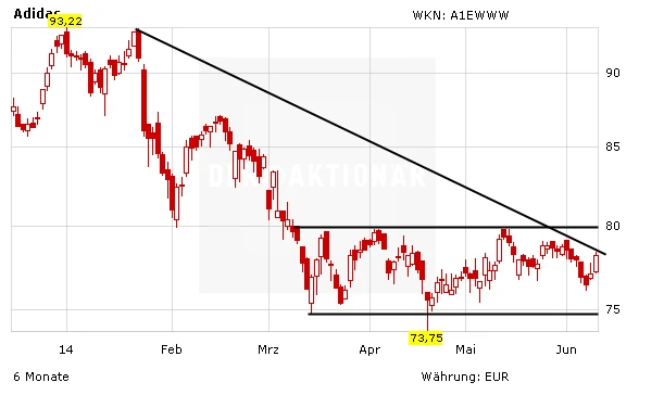 DER AKTIONÄR empfiehlt bei der Adidas-Aktie vorerst weiter abzuwarten. Erst mit einem Überschreiten der 80-Euro-Marke würde der Wert ein neues Kaufsignal generieren. Die Fußball-WM in Brasilien dürfte aber neue Impulse bringen. Derzeit wird aber im Branchenvergleich der US-Konkurrent Nike favorisiert.