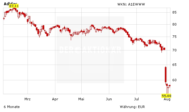 Am Donnerstag wird Adidas zeigen müssen, wie das Geschäft wieder auf Vordermann gebracht werden soll. Vorstand Herbert Hainer muss jetzt beweisen, dass er den Konzern durch den strategischen Umbau einiger Sparten wieder auf Kurs bekommt. Vor einem Neueinstieg sollte aber eine Bodenbildung abgewartet werden.