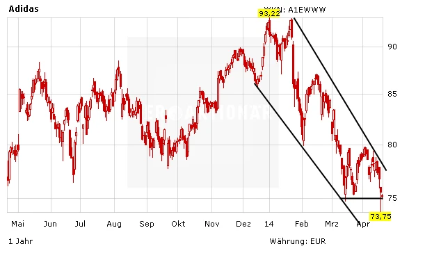 Charttechnisch betrachtet sieht es weiterhin nicht gut für den Sportartikelhersteller aus. Die Aktie befindet sich nach wie vor in einem mittelfristigen Abwärtstrend. Derzeit notiert der Wert über der wichtigen Unterstützung bei 75 Euro.