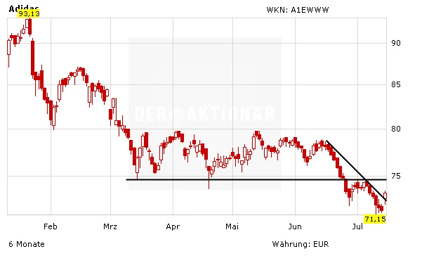Die Investmentbank Equinet hat Adidas ungeachtet eines erwarteten Margenrückgangs im zweiten Quartal von "Accumulate" auf "Buy" hochgestuft. Das Kursziel der Aktie des Sportartikelherstellers wurde zugleich auf 90 Euro belassen. Er rechne zwar damit, dass negative Währungseinflüsse und Rabattaktionen bei der Adidas-Golfmarke TaylorMade im abgelaufenen Jahresviertel ihre Spuren hinterlassen haben, doch das spiegele der Aktienkurs bereits überdeutlich wider, schrieb Analyst Ingbert Faust in einer Studie vom Montag. Auch die politischen Risiken im russischen Markt und der harte Wettbewerb durch den US-Konkurrenten Nike seien bereits eingepreist. Nach dem seit Jahresbeginn kräftigen Kursrückgang sehe er nun für den Rest des Jahres deutliches Verbesserungspotenzial.