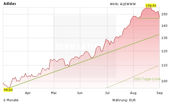 Auch die Analysten der Commerzbank haben sich zu dem Titel geäußert und bestätigen ihre Halteposition mit einem Kursziel von 150 Euro. Die jüngst veröffentlichten, starken Zahlen zum zweiten Quartal und der angehobene Jahresausblick belegten die anhaltende Dynamik der Marke Adidas, schrieb Analyst Andreas Riemann in einer Studie vom Donnerstag. Nach der jüngsten Kursrallye sei die Aktie des Sportartikelherstellers inzwischen aber teuer.