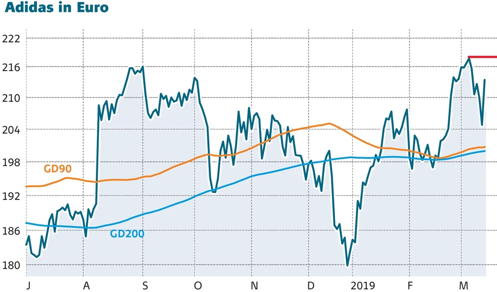 Adidas ist top unterwegs. Das angekündigte Umsatzwachstum von sieben Prozent sollte für den Konzern keine allzu große Herausforderung sein. 2020, im Jahr von Fußball-WM und Olympia, sollte es dann wieder deutlicher kräftiger nach oben gehen. DER AKTIONÄR bleibt bullish.