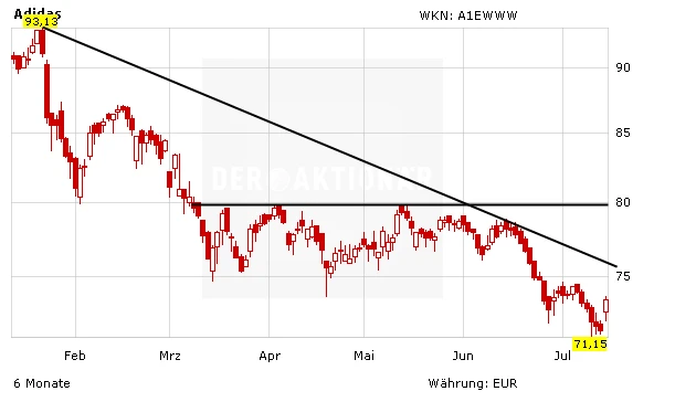 Die Euphorie durch die Fußball-Weltmeisterschaft dürfte den Sportartikelhersteller weiteren Schwung bringen. Spätestens mit den Zahlen für das zweite Quartal wird sich zeigen, ob den Herzogenauracher den Turnaround gelingt. Auch DER AKTIONÄR empfiehlt, bei der Aktie investiert zu bleiben. Die Position sollte aber mit einem Stopp bei 65 Euro nach unten abgesichert werden.