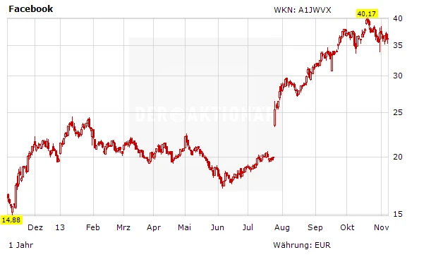 Insgesamt stehen nach dem Börsengang 544,7 Millionen Aktien aus. Damit errechnet sich ein Börsenwert für den Kurznachrichtendienst von rund 25,6 Milliarden Dollar. Das Unternehmen hat gut 230 Millionen aktive Nutzer im Monat. Im März 2012 - die früheste Zahl, die der Dienst im Börsenprospekt nennt - waren es erst knapp 140 Millionen. Pro Tag werden rund 500 Millionen der Tweets genannten Kurznachrichten abgesetzt. In bare Münze zahlt sich die breite Nutzerbasis allerdings noch nicht aus. Von 2011 auf 2012 verdreifachte sich der Umsatz zwar auf knapp 317 Millionen Dollar und von Januar bis September dieses Jahres übertraf Twitter diesen Wert bereits mit 422,2 Millionen Dollar. Allerdings fiel in den ersten neun Monaten dieses Jahres auch ein Verlust von 133,8 Millionen Dollar an. Seit dem Start türmte sich bereits ein Minus von 483,2 Millionen Dollar auf.