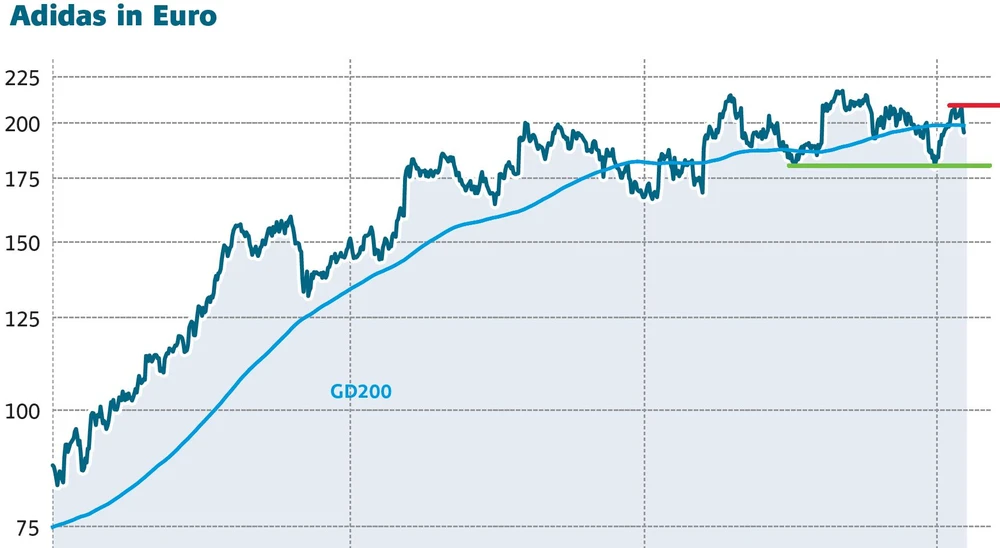 Die Adidas-Aktie war gut ins neue Jahr gestartet. Doch die Dynamik ist weg – vorerst zumindest. Der Titel verliert am Montag zwei Prozent und sackt auf 195 Euro ab. Ein negativer Analystenkommentar vom Freitag belastet weiterhin. DER AKTIONÄR sieht indes noch einiges an Potenzial für den DAX-Titel.