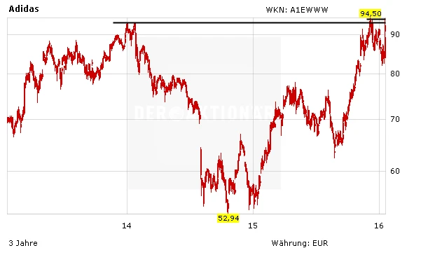 Auch einige andere Analysten haben zuletzt die Aktie näher unter die Lupe genommen. Das Analysehaus Independent Research hat die Einstufung für Adidas nach dem angekündigten Wechsel von Henkel-Vorstandschef Kasper Rorsted an die Spitze des Sportartikelkonzerns auf "Kaufen" mit einem Kursziel von 110 Euro belassen. Rorsted dürfte vor allem an der schwachen Margenentwicklung und den anhaltenden Problemen auf dem US-Markt arbeiten, schrieb Analyst Markus Rießelmann in einer Studie vom Dienstag.