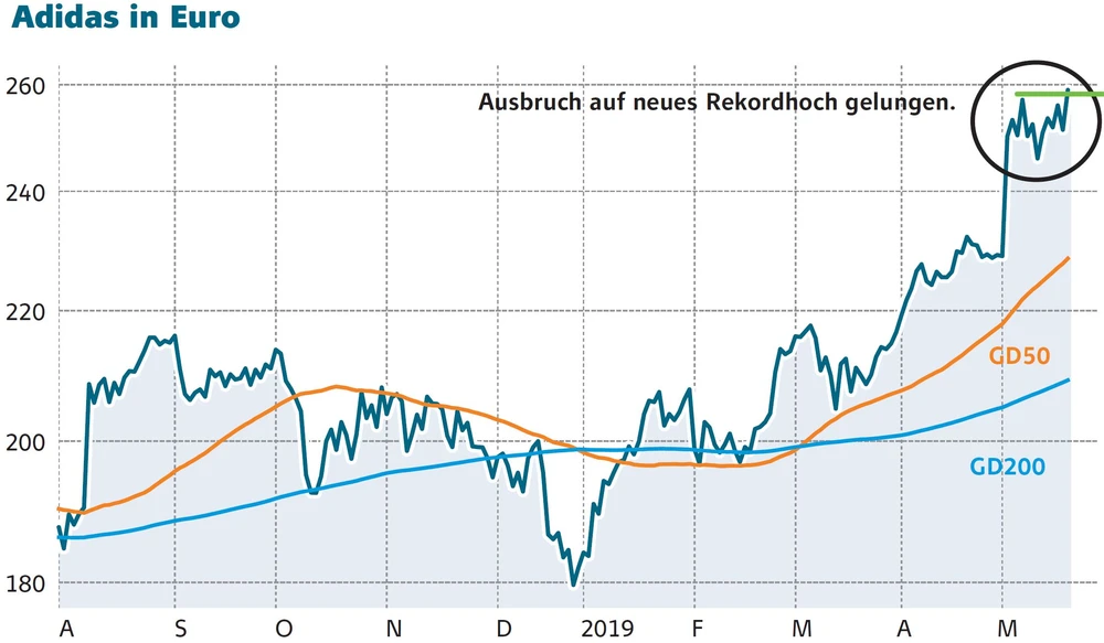 Die Anleger blenden den Handelsstreit am Dienstag aus und kaufen Adidas-Aktien. Der Titel des zweitgrößten Sportartikelherstellers der Welt klettert um drei Prozent auf 258,30 Euro. Rekordhoch!