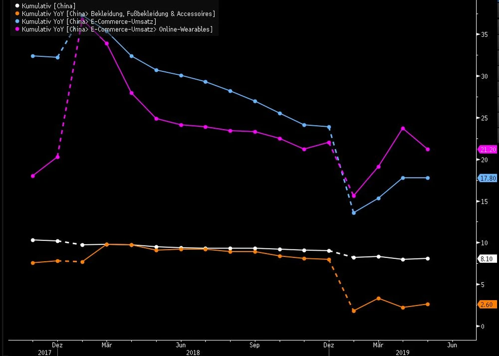 China shoppt zunehmend online – vor allem Kleidung, Schuhe und Accessoires. Die E-Commerce-Umsätze dieser Produkte kletterten im Zeitraum Januar bis Mai um 21 Prozent, berichtet Bloomberg. Insgesamt legten die Online-Verkäufe in China um 18 Prozent zu.