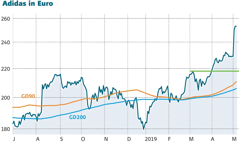 DER AKTIONÄR sieht Adidas hingegen deutlich positiver. Die Marke ist in wie nie, die Margen steigen schneller und stärker als erwartet, zudem hat der Konzern etliche vielversprechende Produkte am Start. Die Aktie ist im Peergroup-Vergleich günstig. Gewinne laufen lassen, Stopp auf 215 Euro anheben!