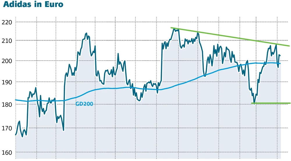 Fundamental läuft es schon lange wieder top bei Adidas. Nun passt auch wieder das Chartbild. Die Aktie hat die 200-, die 90- und die 38-Tage-Linie hinter sich gelassen und nimmt nun Kurs auf den im August begonnenen Abwärtstrend, der aktuell bei 207 Euro verläuft. Gelingt das Break, dürfte es – ein positives Marktumfeld vorausgesetzt – schnell in Richtung Rekordhoch bei 218 Euro weitergehen.