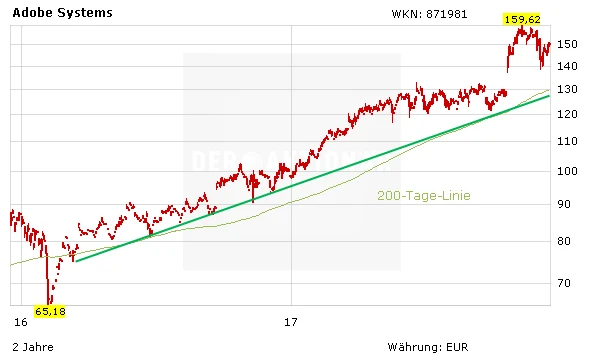 Adobe erzielte einen Gewinn je Aktie nach GAAP von 1,00 Dollar und übertraf damit die Erwartungen der Analysten von 0,88 Dollar. Auch der Umsatz lag mit 2,01 Milliarden Dollar über den erwarteten 1,95 Milliarden Dollar. Damit verzeichnete der Software-Konzern ein Umsatzwachstum von 25 Prozent gegenüber dem Vorjahresquartal – der Gewinn legte ebenfalls um 25 Prozent zu.