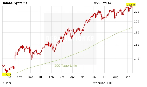 Trotz der guten Zahlen macht die Adobe-Aktie keinen Kurssprung nach oben. Hier sollten sich enttäuschte Anleger jedoch vor Augen halten, dass Zahlen abgeliefert wurden, die ein hohes Kursniveau rechtfertigen. Ein enormer Erfolg nach der rasanten Rallye von 53 Prozent seit Jahresbeginn.