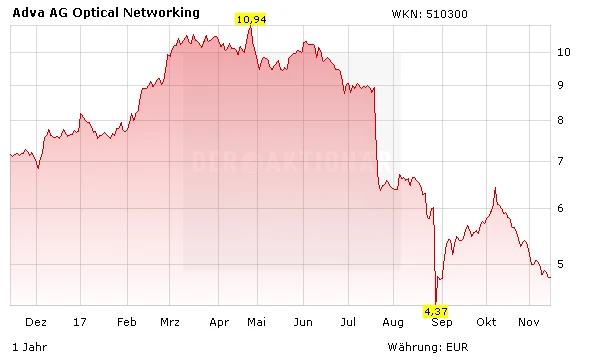 Hinter den Aktionären von ADVA Optical liegen harte Zeiten: Umsatzeinbruch, Gewinnwarnung, rückläufige Aufträge, Probleme mit Kunden, harter Preiskampf und Stellenabbau waren in den vergangenen Wochen die dominierenden Schlagworte. Folge: Die Aktie des Netzwerkinfrastruktur-Spezialisten ist kräftig unter die Räder gekommen.