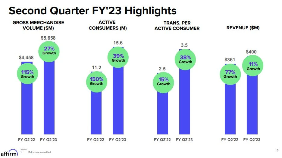 Affirm hat am Mittwochabend nach US-Börsenschluss schwache Zahlen für das abgelaufene zweite Geschäftsquartal präsentiert. Demnach ist der Umsatz im Vergleich zum Vorjahreszeitraum zwar um elf Prozent auf 400 Millionen Dollar gestiegen. Analysten hatten im Vorfeld allerdings im Schnitt mit einem Anstieg auf 416 Millionen Dollar gerechnet.