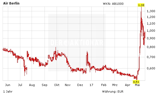 DER AKTIONÄR hält weiterhin an seiner Einschätzung fest: Es besteht zwar natürlich die Möglichkeit, dass die Aktie von Air Berlin erneut innerhalb kurzer Zeit wieder kräftig steigt, sich womöglich sogar verdoppelt. Mit Geldanlage hat dies allerdings wenig zu tun. Wer Spaß am Nervenkitzel hat, kann auf Air Berlin wetten, wer sein Kapital langfristig orientiert anlegen will, setzt eher auf Ryanair.