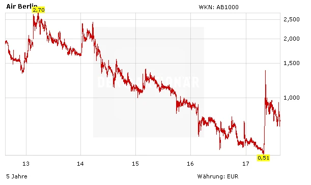 Die gute Nachricht für alle Kunden: Der Flugbetrieb soll zunächst ganz normal fortgeführt werden. Die schlechte Nachricht für all die Zocker, die auf ein Übernahmeangebot durch die Lufthansa oder einen anderen Konkurrenten gewettet haben: Die Aktie wurde zunächst vom Handel ausgesetzt und gab direkt nach Wiedereröffnung mehr als 40 Prozent nach.