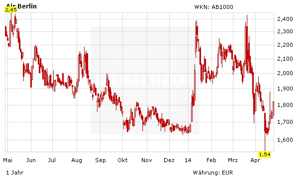 Der Lufthansa -Konkurrent steckt seit langem in der Krise. 2012 hatte der Verkauf des Vielfliegerprogramms an den Etihad noch zu einem leichten Plus von rund sieben Millionen Euro geführt. 2013 brach auch das laufende Geschäft ein. Das Ergebnis vor Zinsen und Steuern von Air Berlin sank von einem Plus von 70,2 Millionen Euro im Vorjahr auf minus 231,9 Mio. Der Konzernumsatz schmolz von 4,31 Milliarden Euro auf 4,15 Milliarden Euro. Das Unternehmen führte die Probleme auch auf eine unerwartet schwache Sommersaison mit hohen Temperaturen in Mitteleuropa zurück.