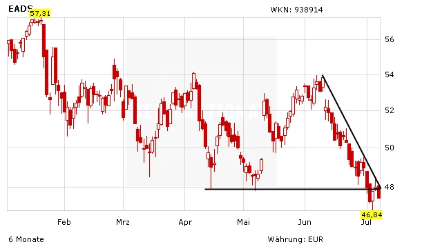 Auch DER AKTIONÄR bleibt weiter optimistisch, was die weitere Entwicklung von Airbus angeht. Die Charttechnik ist allerdings leicht angeschlagen. Vor einem Neueinstieg sollte deswegen der Bruch des kurzfristigen Abwärtstrends und die Rückeroberung der 48-Euro-Marke abgewartet werden. Ein Stopp zur Absicherung sollte bei 42,80 Euro platziert werden.