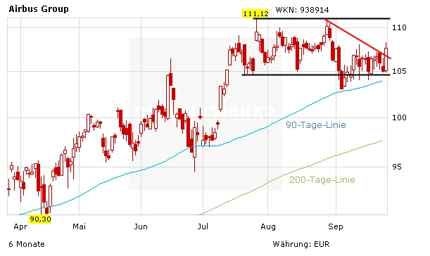 Zudem ist eine hochrangige Delegation nach China aufgebrochen, um einen 18-Milliarden-Dollar-Auftrag aus Januar unter Dach und Fach zu bringen. Es wird wohl vorrangig darum gehen, wie man mit China im Handelskrieg mit den USA weiterhin Geschäfte machen kann. Den Börsianern gefällt das offenbar. Die Airbus-Aktie stieg am Mittwoch wieder auf über 108 Euro und hat damit einen Kurzfrist-Abwärtstrend sowie die 38-Tage-Linie überwunden. In den kommenden Tagen könnte der Aufschwung Richtung Allzeithoch weitergehen. Engagierte Anleger lassen ihre Gewinne mit Kursziel 130 Euro laufen.