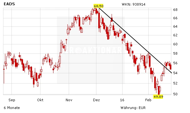 Die Aktie von Airbus ist nach anfänglichen Gewinnen im Tagesverlauf ins Minus gerutscht. Von den jüngsten Tiefständen im Bereich von 50 Euro, wo eine wichtige Unterstützung erfolgreich getestet wurde, hat sich das Papier aber inzwischen wieder deutlich entfernen können.