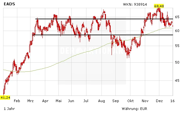 Die Stimmung in der gesamten Flugzeugbranche ist gut. Davon profitiert Airbus in großem Maße. Mit Blick auf den Chart konnte Airbus den Rivalen Boeing im letzten Jahr klar hinter sich lassen. Die Auftragsbücher sind voll, es kommen viele Neuaufträge aus Nordamerika und China. Zwar ging es für die Airbus-Aktie im Dezember nach unten, doch der Blick dürfte nach den positiven Neuigkeiten zum Jahresstart schnell wieder nach oben gehen. Anleger bleiben an Bord. Das Kursziel des AKTIONÄR liegt bei 80 Euro.