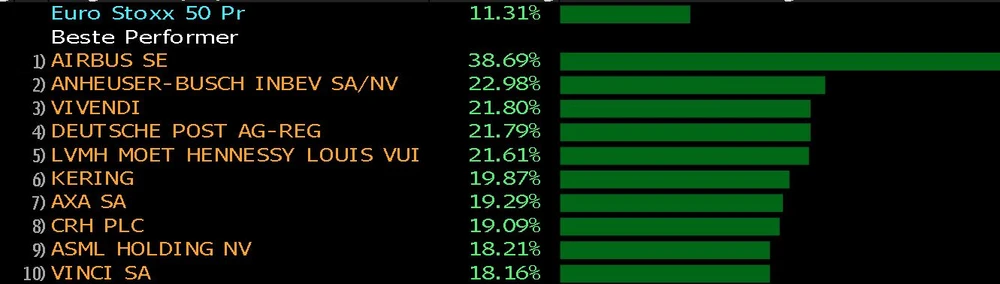 Bei der Airbus-Aktie läuft es hingegen weiterhin rund. Nach starken Zahlen und der Bekanntgabe, die Produktion des defizitären A380 einzustellen, schnellte der Kurs bereits nach oben. Nun rechnen viele Marktteilnehmer damit, dass der Konzern vom Boeing-Desaster nachhaltig profitieren könnte. So ist es durchaus möglich, dass einige 737er-Kunden beispielsweise auf Maschinen der Airbus-Reihe A320 neo setzen, die ohnehin schon mehr Orders verbucht haben (siehe Grafik oben). Vor diesem Hintergrund ist es wenig verwunderlich, dass die Airbus-Titel aktuell im bisherigen Jahresverlauf die klare Nummer 1 im Stoxx Europe sind.