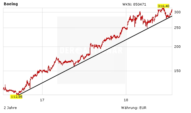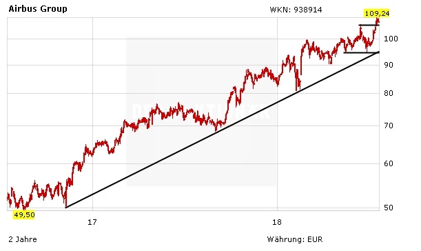 Airbus und Boeing punkten mit einer hervorragenden Marktstellung, prall gefüllten Orderbüchern, soliden Bilanzen und starken Chartbildern. Anleger können daher bei den beiden Blue Chips unverändert zugreifen. Die Stoppkurse sollten zur Gewinnsicherung nun auf 83,50 Euro (Airbus) und 235,00 Euro (Boeing) nachgezogen werden.