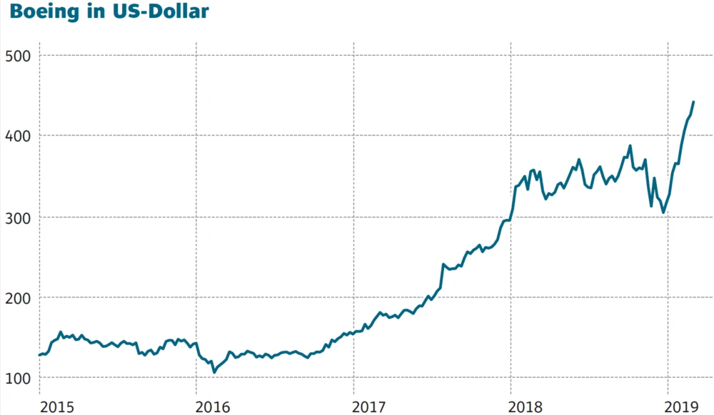 Denn auch die Boeing-Anteile sind so teuer wie nie zuvor. Seit Ende 2016 hat sich der Aktienkurs sogar verdreifacht. Die beiden Flugzeugbauer profitieren einfach vom stetig wachsenden Flugverkehr weltweit, allen voran natürlich in Asien. Und die Prognosen des Airline-Verbands IATA geben nicht gerade Anlass zu erhöhter Sorge: