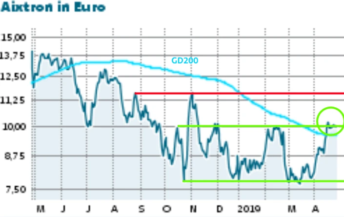 Das Fazit hat Bestand: Aixtron profitiert von seiner breiten Aufstellung. Die zahlreichen Anwendungsbereiche für die Maschinen befinden sich dabei in absoluten Megatrends, die zum Teil erst am Anfang ihrer kommerziellen Nutzung stehen. Verdichten sich die Anzeichen für eine Nachfragebelebung ab dem zweiten Halbjahr, dann dürfte die Aktie nachhaltig in zweistellige Regionen vorstoßen – auch wenn sich Anleger dabei auf eine anhaltend volatile Kursentwicklung einstellen sollten.