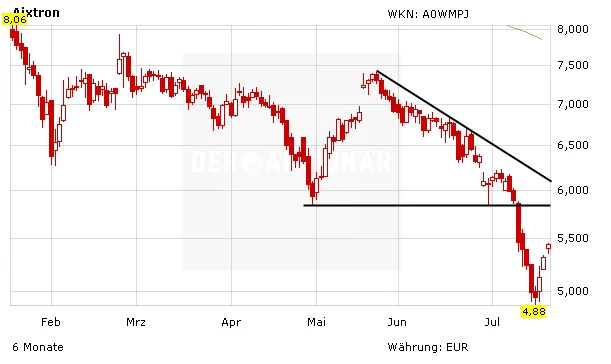 Wer zocken will, ist deshalb bei Aixtron genau richtig. Bis zu den Zahlen kann es durchaus noch über 6,00 Euro gehen. Was anschließend passiert, weiß wohl nur das Unternehmen selbst.