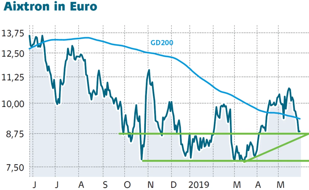 Im Gegenteil: Heute nimmt die Talfahrt der Papiere des Anlagenbauers für die Halbleiterindustrie sogar noch mehr Fahrt auf. Im Tief rutschte der Kurs bisher um rund sechs Prozent auf 8,62 Euro ab.
