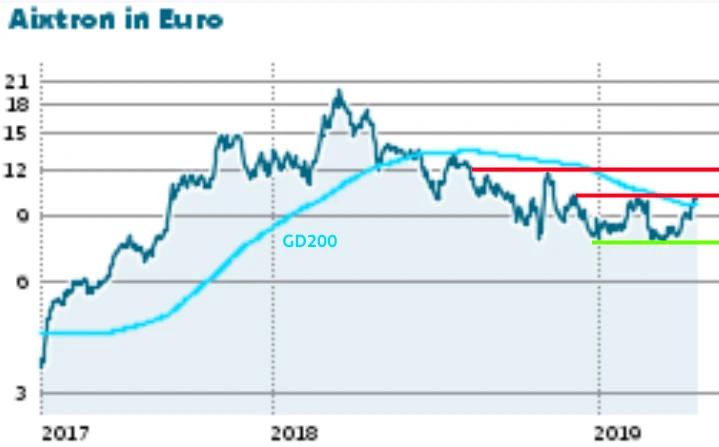 Den Jahresauftakt verpatzte Aixtron mit dem verhaltenen Ausblick. Mit einer Kaufempfehlung der Deutschen Bank fiel dann aber der Startschuss für eine neue Aufwärtsbewegung. Diese wurde durch die Hoffnung auf eine Einigung im Handelsstreit und einen Schuss Übernahmefantasie befeuert.
