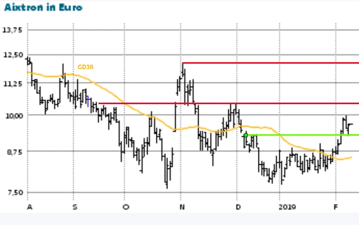 Bei Aixtron stehen am 26. Februar die vorläufigen Zahlen für das abgelaufene Jahr auf der Agenda. Erste Investoren positionieren sich im Vorfeld der Veröffentlichung. Die Aktie steigt und hat mit dem Sprung über die 9-Euro-Marke ein Kaufsignal generiert. Den Rücksetzer bei DAX und Co schüttelt die Aktie unbeeindruckt ab. Bleiben die Bullen am Drücker, könnte die Aufwärtsbewegung in den nächsten Tagen Fahrt aufnehmen.