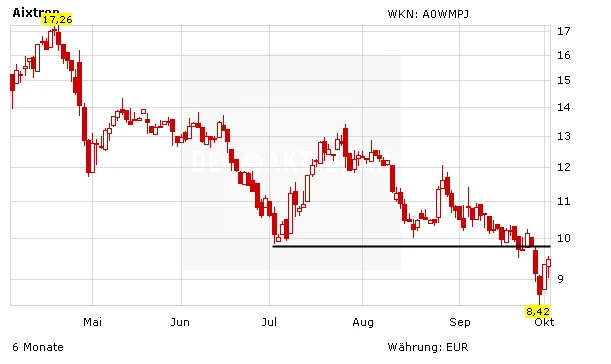 Mehrere Monate hat die Unterstützung bei 9,75 Euro dem Aixtron-Kurs Halt gegeben. In der vergangenen Woche ist die Aktie unter die Marke gerutscht. Doch die Chancen auf ein schnelles Comeback stehen nicht schlecht.
